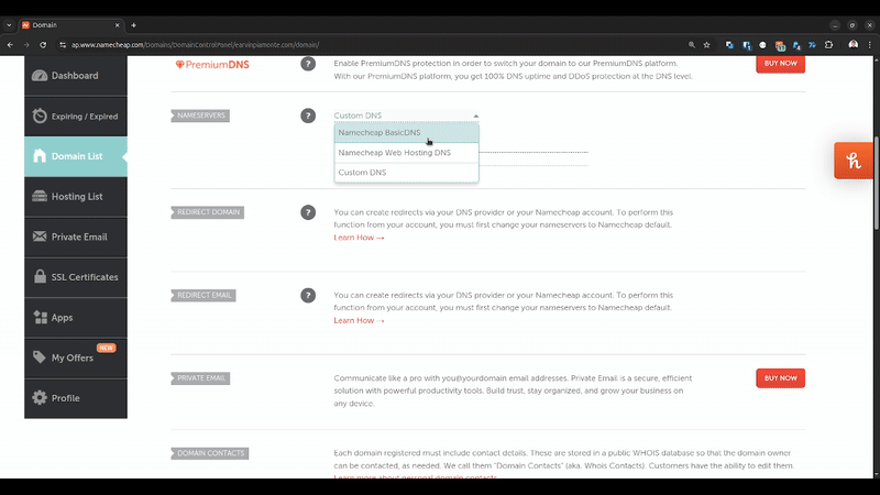 I went to my domain in Namecheap and updated my Name Servers from "Custom DNS" to "Namecheap BasicDNS".